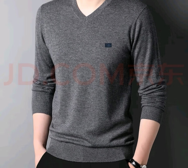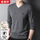 恒源祥100%纯羊毛男士V领薄款修身针织衫毛衣15001002 中灰 180/96A