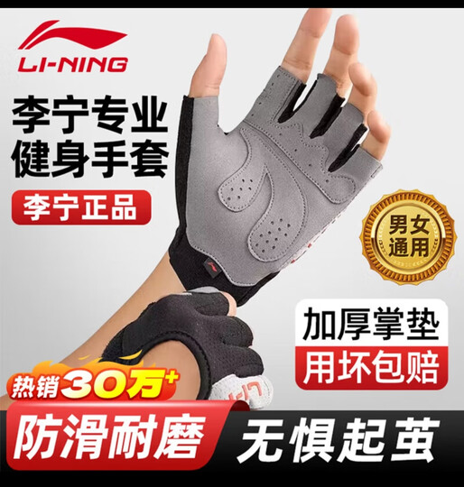 李宁健身手套男女运动骑行半指训练单杠引体向上撸铁器械锻炼防滑登山