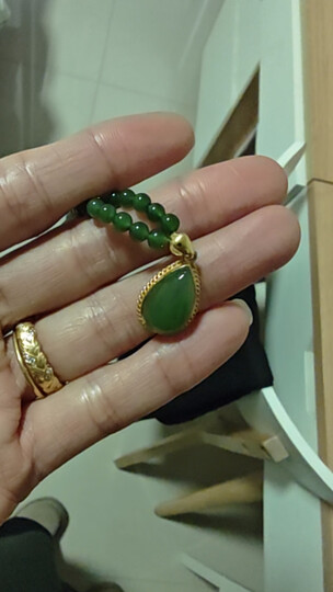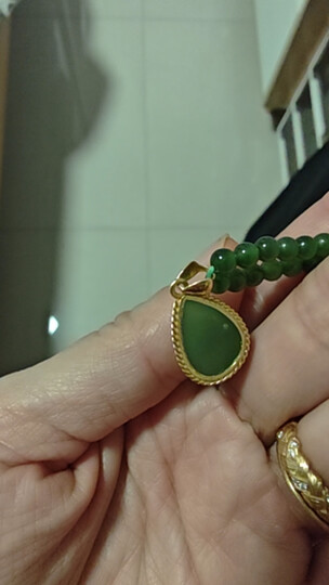 周六福水滴形和田玉吊坠黄金镶玉坠生日礼物AAYB042684 不含链