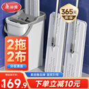 美丽雅平板拖把38cm2拖把2布带桶一套免手洗干湿两用家用一拖净洗拖一体