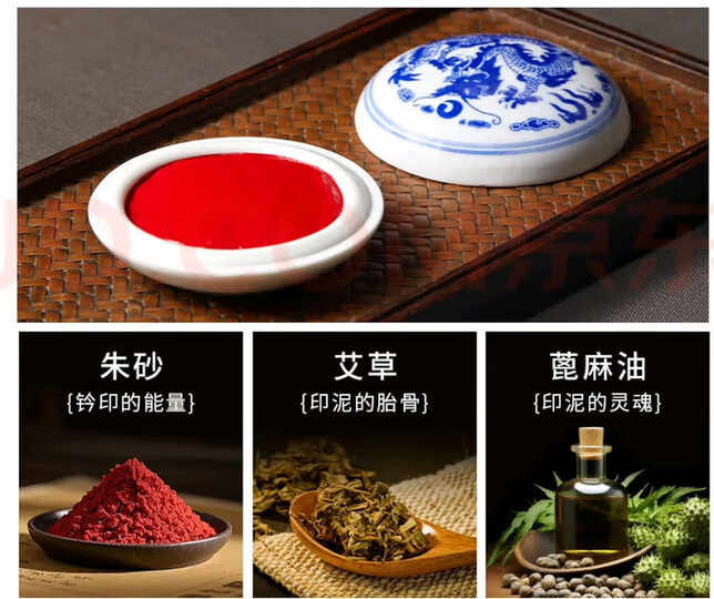 六品堂画者堆朱砂印泥 红色书法国画篆刻专用盖章印泥油印章便携陶瓷印台盒蓖麻油文房四宝礼盒送礼套装