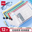 得力(deli)12只A5透明网格拉链袋 资料小学生科目分类文件袋 票据试卷收纳 文件保护 颜色随机63480