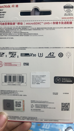 闪迪(SanDisk)1TB TF(MicroSD)内存卡 4K极速金卡A2 V30 U3行车记录仪 运动相机无人机 监控存储卡 读190MB/s