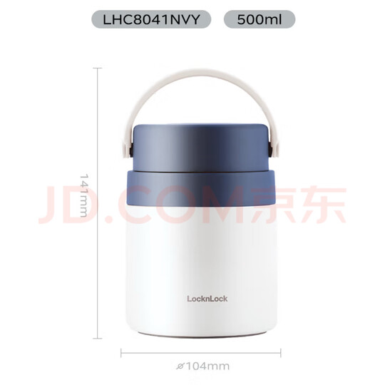 乐扣乐扣LOCK&LOCK保温桶 不锈钢便携式手提保温饭盒带餐具500ml 蓝色