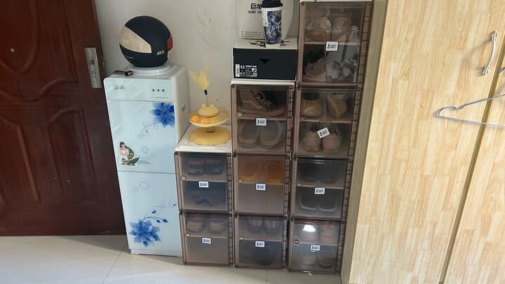 蚂蚁盒子(MAYIHEZI)免安装可折叠鞋盒茶色塑料鞋柜门口收纳防尘防潮鞋盒 1列6层6格