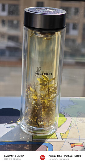 希诺(heenoor)抗菌玻璃杯双层防烫办公车载水杯男高档泡茶杯子XN-9607K 410mL