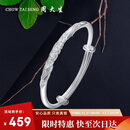 周大生足银手镯S990实心开口调节银手镯繁花优雅生日礼物送女友