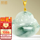 凤禧珠宝18K金镶玉翡翠玉佛吊坠女士飘绿弥勒佛天然玉项链生日礼物