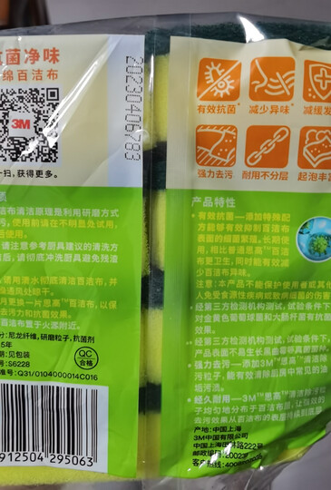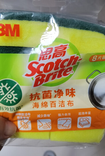 3M思高抗菌净味海绵百洁布8片装 洗碗海绵清洁洗碗巾抹布厨房家用