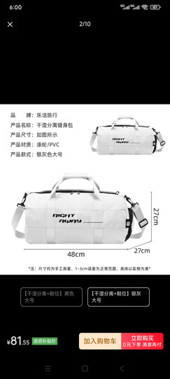 乐活旅行运动健身包干湿分离升级款 银色大号