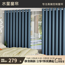 水星家纺免打孔窗帘遮光卧室全遮光布杆子全套隔音飘窗遮阳帘5.0x2.7m蓝色