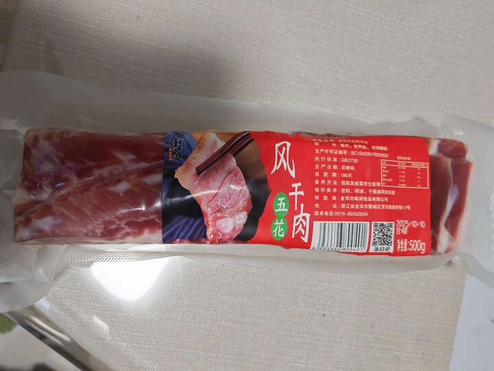 物流很快送达到家包装完好无损,回购的商品了,前几天买了一袋烧笋味道很好哦,又下单买一块炒着吃,日期新鲜,多层五花肥瘦均匀的很完美,有活动再回购!
