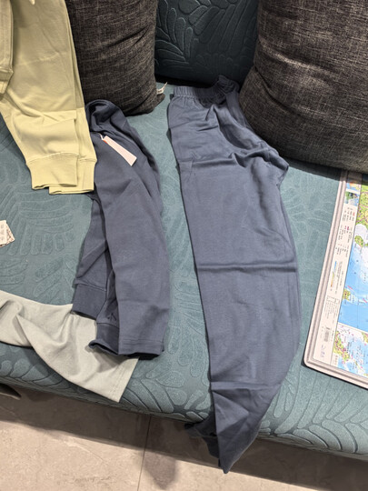 猫人儿童内衣套装纯棉男童中高领秋衣秋裤青少年内衣 圆领灰蓝 160