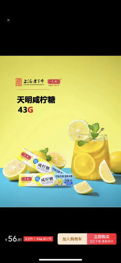 天明润喉糖 海盐柠檬咸柠糖43g*16 薄荷口气清新凉糖 上海老字号