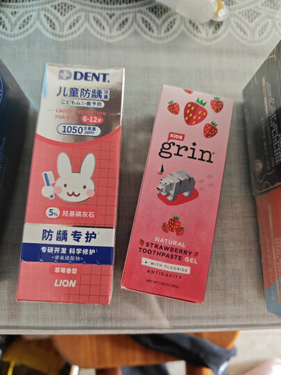 grin儿童牙膏含氟防蛀3-6-12岁宝宝婴幼儿青少年学生牙膏45g草莓味