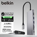 贝尔金(BELKIN)扩展坞 万兆Type-C拓展七合一 PD供电 苹果笔记本电脑转接 HDMI4K投屏 网线/SD读卡 兼容雷电口