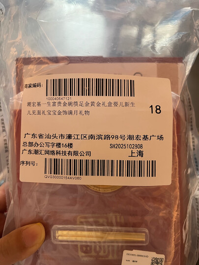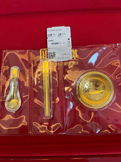 包装很用心,标签齐全,足金999,买来送宝宝满月的礼物,寓意吉祥,做工精良,选对了,很满意!
