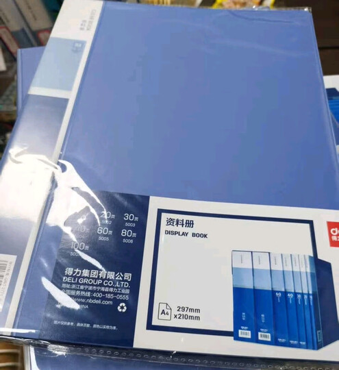 得力(deli)10只A4/60页资料册 商务考试文件夹合同资料档案收纳册活页插袋 办公学习文件保护蓝色PQ101-J60