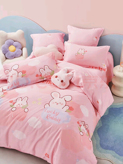 纯棉的手感很好,色粉嫩,图案可爱孩子也非常喜欢,非常推荐购买,之前买过一套,睡着很舒服,再次购买一样很满意,就是价格有点小贵