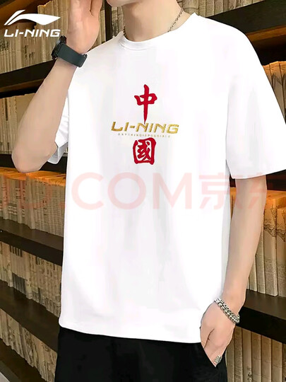 李宁(LI-NING)短袖t恤男夏款潮流印花情侣款半袖宽松休闲透气圆领纯棉运动T恤