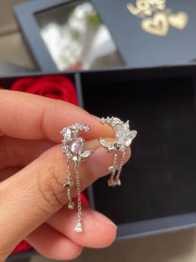 缔晶925银耳夹女无耳洞耳骨钉夹耳式流苏免耳洞免打孔耳钉不用打孔