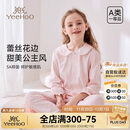 英氏5A级全身抑菌A类儿童睡衣套装女童睡衣长袖长裤儿童家居服粉色160