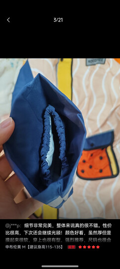 这小孩雨衣真挺不错的,设计得很有童趣,颜色鲜艳又柔和,能吸引孩子的注意力。材质也很安全,孩子拿着玩完全不用担心。而且它里面的故事和图案都很有教育意义,能让孩子在玩的过程中学到一些道理。孩子玩得可开心了,经常抱着不撒手。质量也挺好,挺耐用的,孩子怎么折腾都没坏。我感觉这个小孩寓意不仅是个玩具,更像是孩子的一个小伙伴,能陪着孩子成长,让孩子在快乐中收获知识。