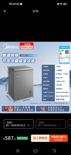 美的(Midea)100L单温家用冰柜减霜冷藏冷冻柜两用小冰柜一级能效节能冷柜小型冰箱BD/BC-100KMF(E)国家补贴