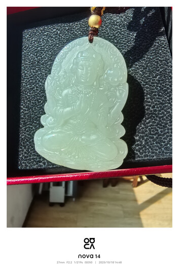 宝贝超过我的预期,一分钱一分货,上千的跟几百块的确实不一样,雕工很好,玉的质量虽然我不懂,但是看起来很好看。拍几张各种光线下的照片给大家参考。哦弥陀佛,一切顺顺利利