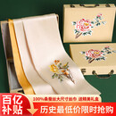 杭丝路苏绣丝巾真丝女桑蚕丝围巾披肩送妈妈高档生日礼物长辈牡丹金色
