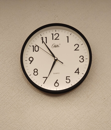12英寸尺寸挂在墙壁上,大小合适。黑色边框非常经典好看,秒针走时静音效果相当好,五星好评!