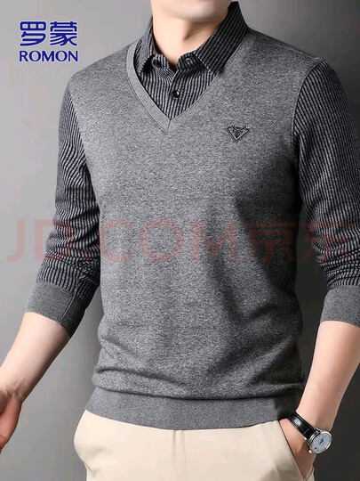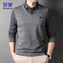 罗蒙(ROMON)长袖t恤男秋冬季商务毛衣男士针织衫假两件休闲上衣服