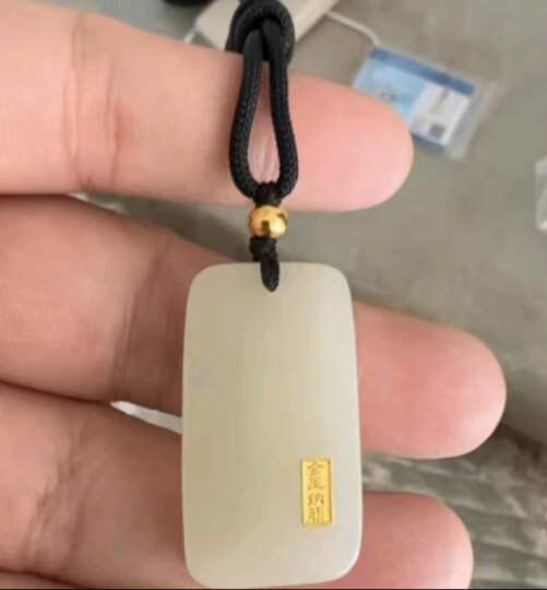 周大生黄金吊坠金镶玉无事牌和田玉情侣款送生日礼物 金玉纳福-小版