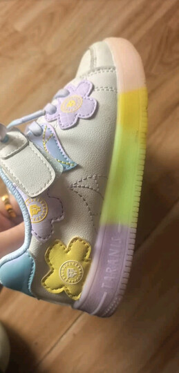 泰兰尼斯闪灯鞋秋季儿童运动鞋女童软底发光鞋男童时尚板鞋 白/蓝/紫 27码