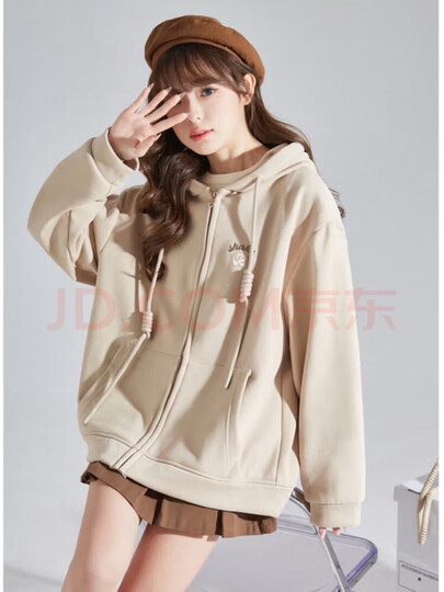 唐狮(TonLion)2025针织外套女休闲卫衣开衫连帽上衣 加绒款/浅卡其 L