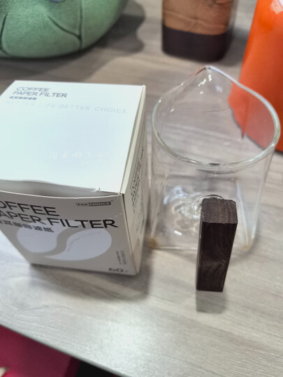刚买回来的时候,我还在琢磨用什么东西来放比较合适。突然发现我有一个闲置的公道杯。直接一使用哎,挺好的。所以这就成了我泡咖啡用的专用东西了。