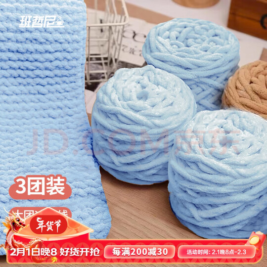 班哲尼毛线团粗编织DIY钩拖鞋工具冰条线手工宝宝儿童幼儿园细中毛线球