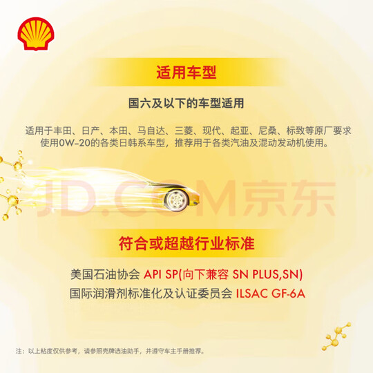 壳牌(Shell)保养单次卡 含机油机滤工时都市光影0W-20 SP 5L