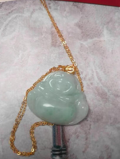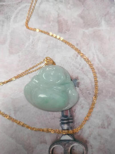 以心参玉18K金镶翡翠佛公吊坠冰透大肚弥勒笑佛玉石挂件
