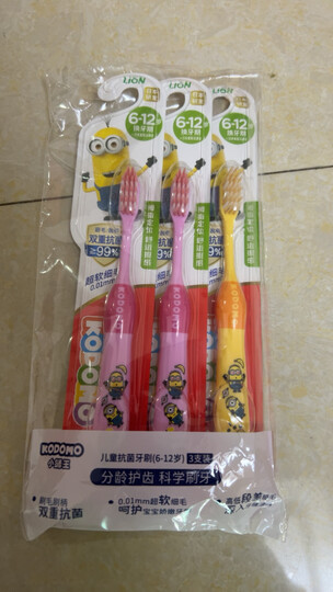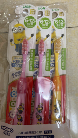 狮王(Lion)小狮王儿童抗菌牙刷6-12岁*3细软毛牙刷换牙期 粉色*2+黄色*1