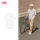 李宁短袖T恤宽松男女款简约纯色日常圆领运动上衣AHSU743