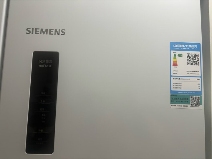 去年给妈妈家买过这台西门子双开门十字星冰箱,性价比比较好,今年再给自己入手一台,容量大能放下很多东西,噪音小,白色外观高大上,制冷效果保鲜效果都不错,家里一直都在使用西门子品牌的产品,物流粉很快服务好,送货上门