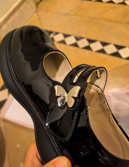 这双鞋真的太值了!✨黑色亮面设计超显气质,蝴蝶结点缀可爱又精致🎀。孩子穿上说特别舒服,走路不累脚👣,鞋底软硬适中,防滑性也很好👍。尺码标准,大小合适,穿着很稳当💼。做工精细,细节处理到位,物美价廉的典范👏!快递包装也很用心,送货速度快🚚。强烈推荐给需要童鞋的宝妈们💖!!