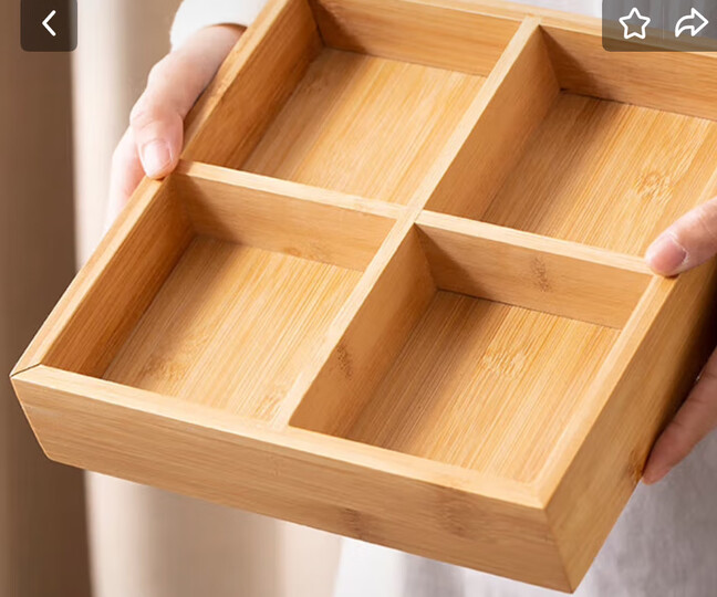 拜杰水果盘零食盘分格干果盘高档瓜子盘坚果盘干果收纳盒原木四格