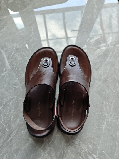 红蜻蜓皮凉鞋男透气夹脚人字凉拖鞋男头层牛皮沙滩鞋男WLT240142棕色42