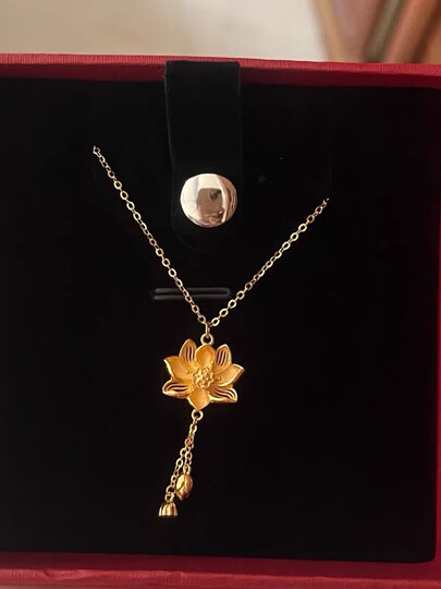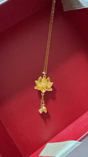 项链的细节做工非常好,莲花的花瓣和花蕾纹理清晰,项链虽然有点细,但是整体佩戴效果良好,项链可调节长短,包装精美,克重暴击,顺丰快递送货上门,很满意!