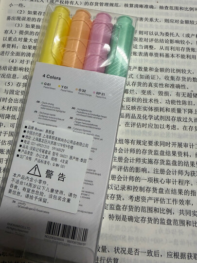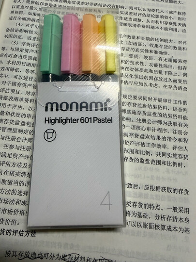 慕那美(monami)荧光笔学生用做笔记神器彩色记号笔标记划重点不掉色 淡色系4色套装06021Z04-P