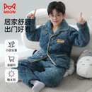 猫人儿童夹棉睡衣冬季男童三层加厚加男孩中大童保暖套装法兰绒家居服