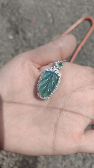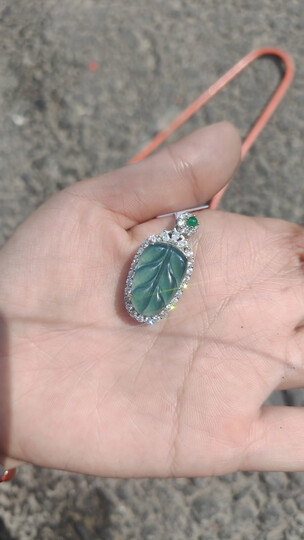 自然光下拍的,颜色漂亮,屋里偏绿,自然光显蓝,应该是真货,不是很贵就没有那么多要求,配上我的足银项链很漂亮