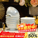 浩雅景德镇高档陶瓷碗具套装陶瓷米饭碗家用雅清4.5英寸高脚碗10个装